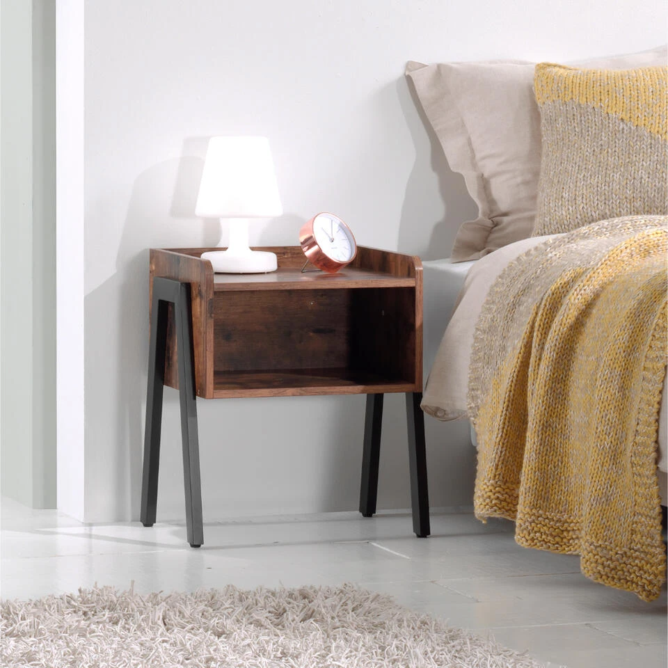 Dit nachtkastje is esthetisch én praktisch. Het meubel past met zijn vintage look perfect in een industrieel en trendy interieur. De unieke kleurencombinatie van zwart en vintage bruin zal sfeer brengen aan uw slaapkamer. Ook aan opslagruimte geen gebrek want het nachtkastje biedt voldoende mogelijkheid om essentiële zaken zoals een wekker, gsm of boek op te bergen. Het maximaal draagvermogen is 20 kg.