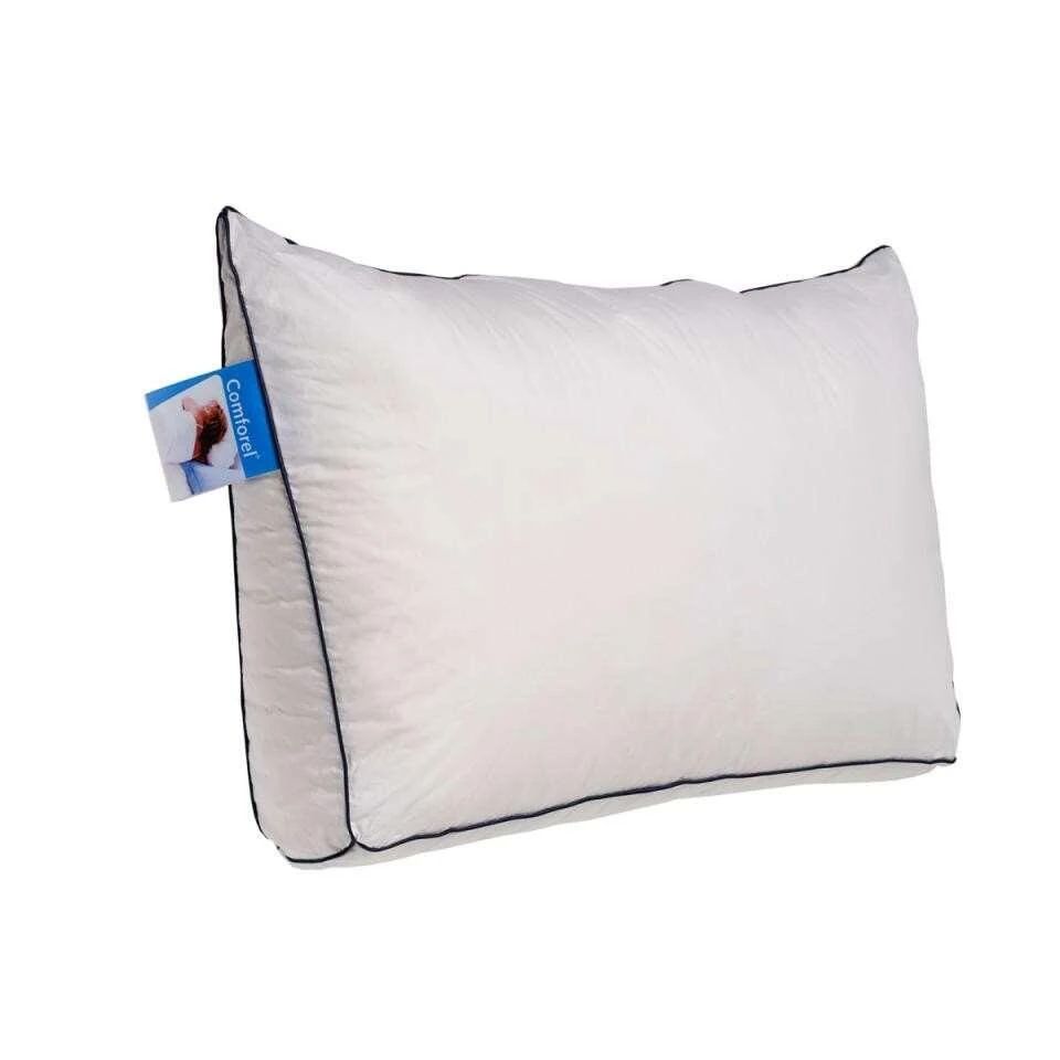 Dit hoofdkussen heeft een zachte, opschudbare synthetische vulling van orginele Dacron comforel vezelbolletjes. Dit zorgt voor optimaal comfort, goede hygiene, onderhoudsgemak en is bovendien anti-allergisch. Wasbaar op 60 graden. Door de speciale vorm geeft dit kussen optimale ondersteuning voor uw nek.