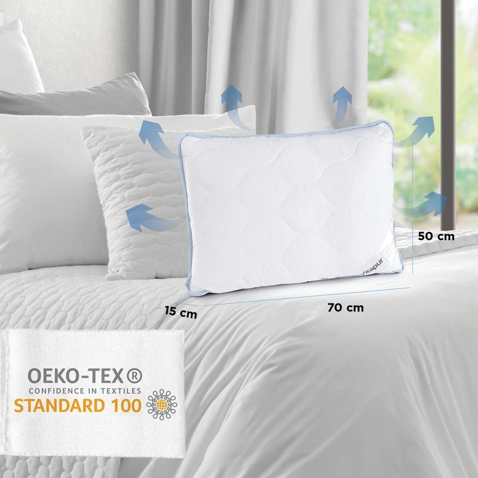 - Klassiek kussen voor alle slaaphoudingen (rugslapers, buikslapers en zijslapers)