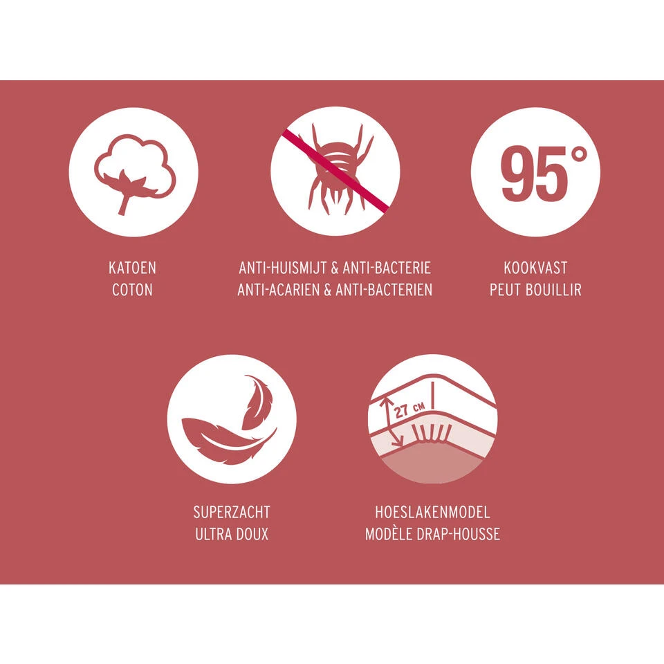 Een molton matrasbeschermer slaapt uiterst zacht. Molton is duurzaam, vorm- en slijtvast. Een molton matrasbeschermer heeft een absorberend vermogen maar is niet waterdicht. De matrasbeschermer is anti-huismijt & anti-bacterie. Je kan de matrasbeschermer wassen op 95°.
