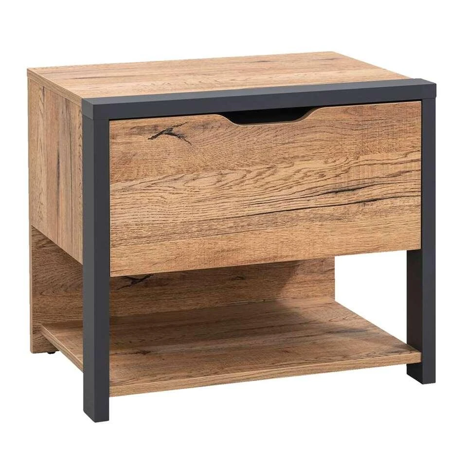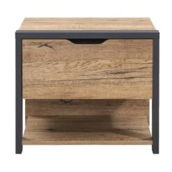 Nachtkastje Harvey heeft een stijlvolle donker eikenkleur. Het kastje is gemaakt van spaanplaat met stijlvolle omlijsting in antraciet. De greep loze lade zorgt voor opbergruimte en heeft een moderne uitstraling door de strakke afwerking. Bovenop en onderin het kastje heb je voldoende ruimte voor een wekker, je telefoon en een boek. Door de lage pootjes, ziet het kastje er knus, gezellig, maar toch ook stoer uit en biedt het direct sfeer in jouw slaapkamer.