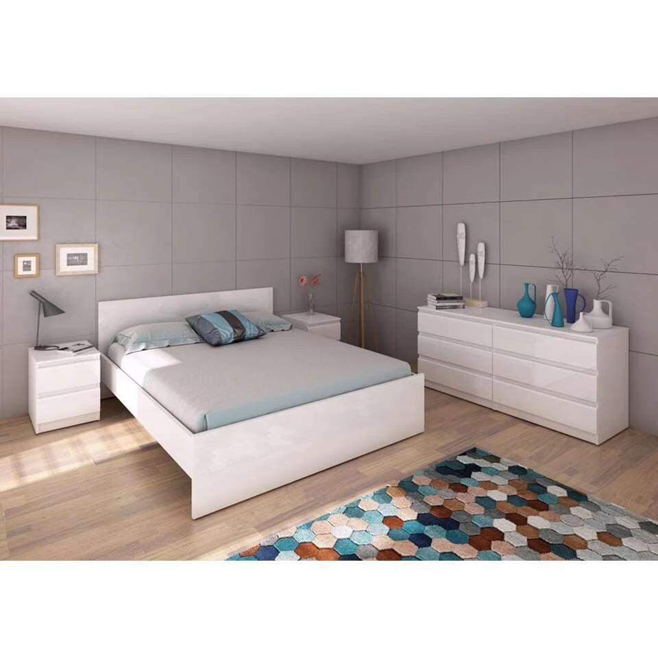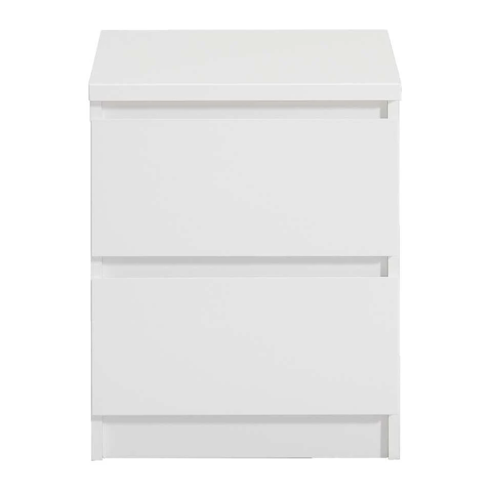 Nachtkastje Naia is het ideale meubel voor naast je bed. Zet er een nachtlampje op en gebruik de opbergruimte voor je favoriete boeken en tijdschriften. Dit meubel is gemaakt van spaanplaat. Nachtkastje Naia 2 lades is ook verkrijgbaar in zwart en 3 lades.
