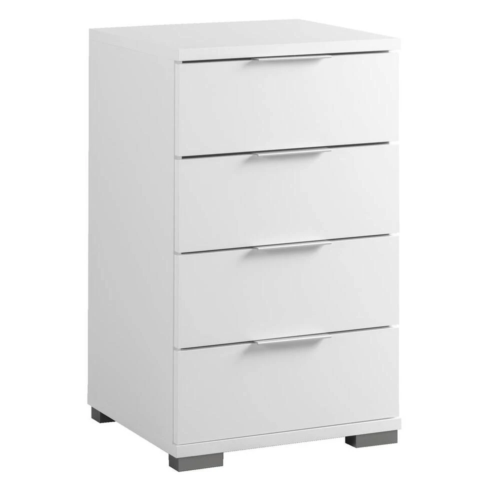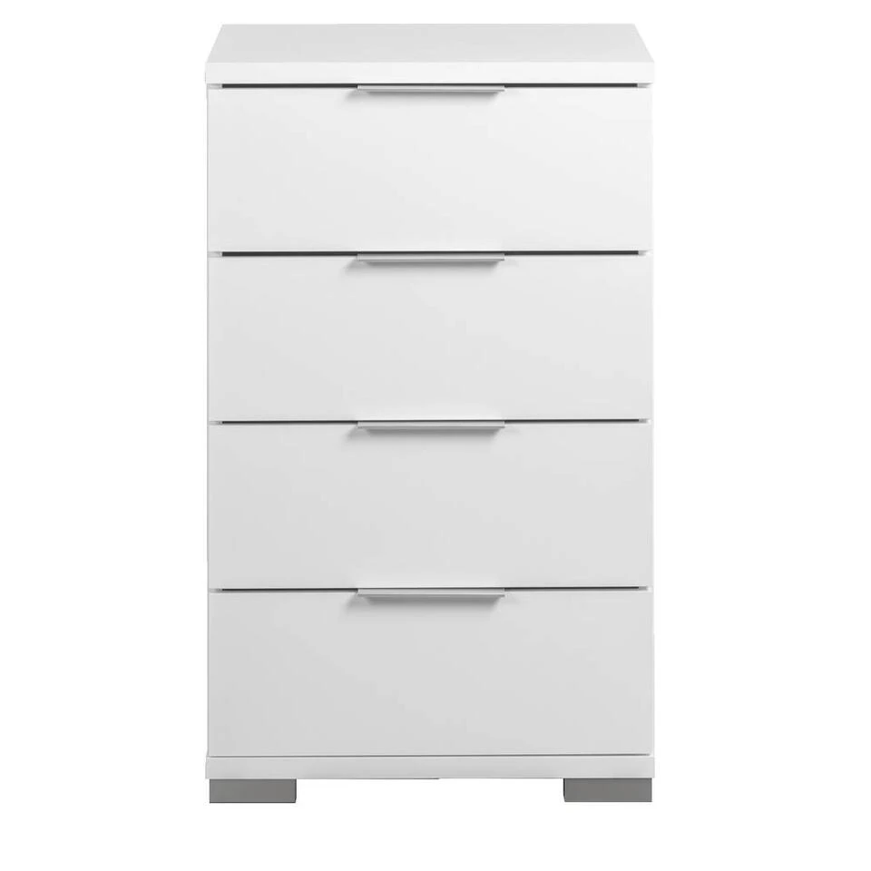 Nachtkastje Valencia is een stijlvol kastje voor in de slaapkamer. Dit kastje is wit van kleur en gemaakt van spaanplaat. Dit kastje heeft 4 ruime lades voor het opbergen van allerlei handige spullen. Bovenop kan een nachtlampje, wekker of andere accessoires worden gezet. De totale afmeting (hxbxd) van dit kastje is 79x46x42 cm.