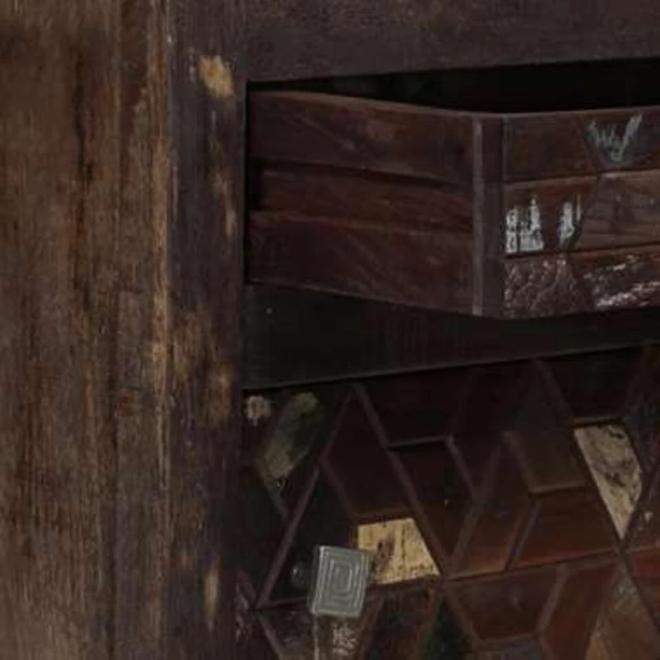 - Prachtig ingelegd patroon op de kastdeur en ladefront