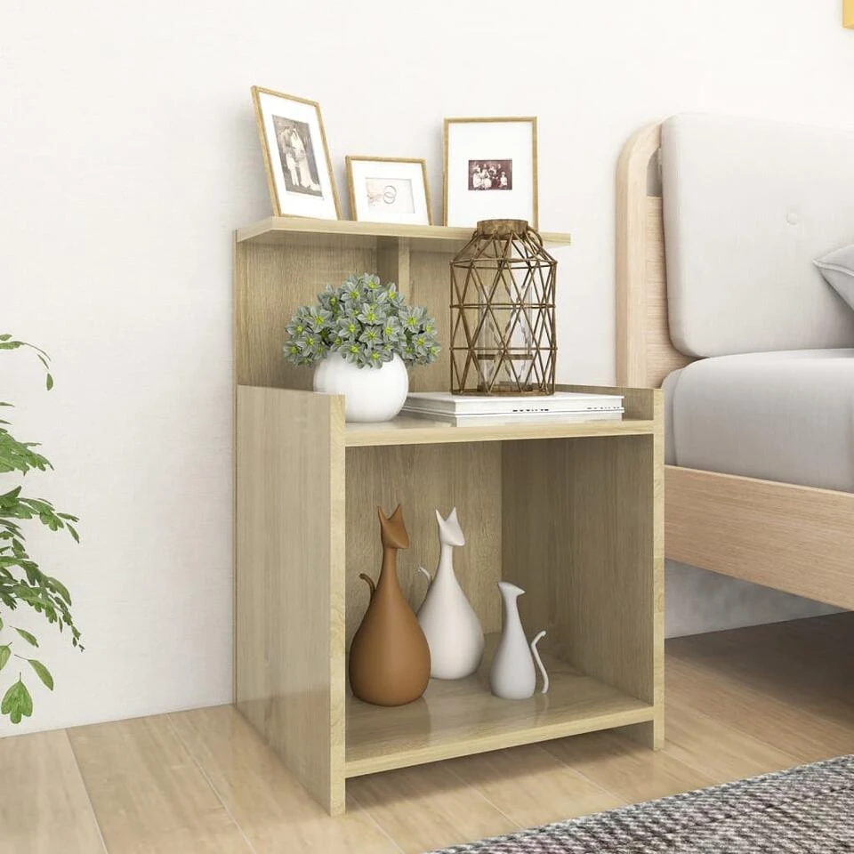 Dankzij de stevige constructie is dit bijzetkastje zeer duurzaam. Het nachtkastje is uitgerust met 3 open schappen, die voldoende ruimte bieden om je tijdschriften, boeken, afstandsbedieningen en andere kleine voorwerpen overzichtelijk en binnen handbereik te houden. Bovendien is dit nachtkastje gemakkelijk schoon te maken met een vochtige doek.