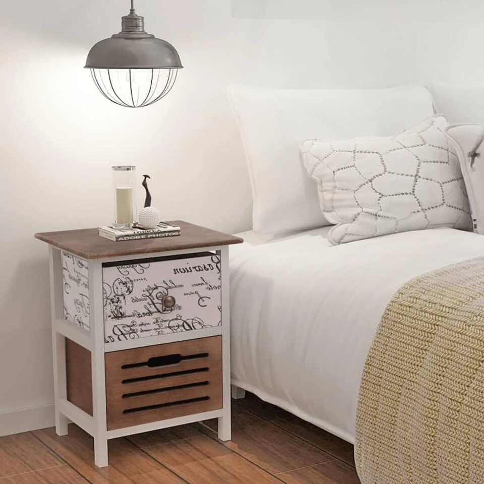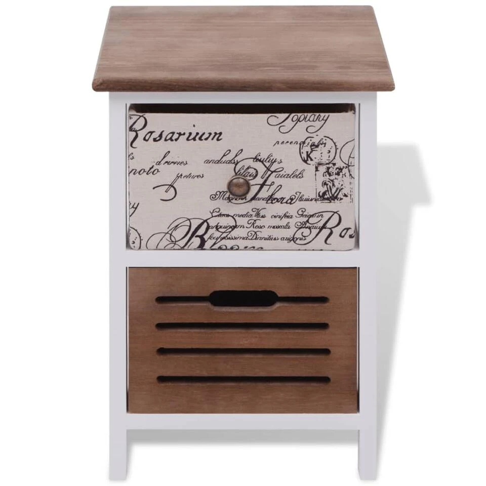 Dit compacte kastje is vakkundig gemaakt. Het heeft 2 lades, die meer dan voldoende ruimte bieden om kleine spullen binnen handbereik op te bergen. De vintage landelijke stijl afdruk draagt bij aan de landelijke charme van de kast.