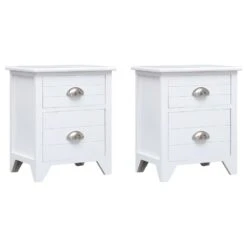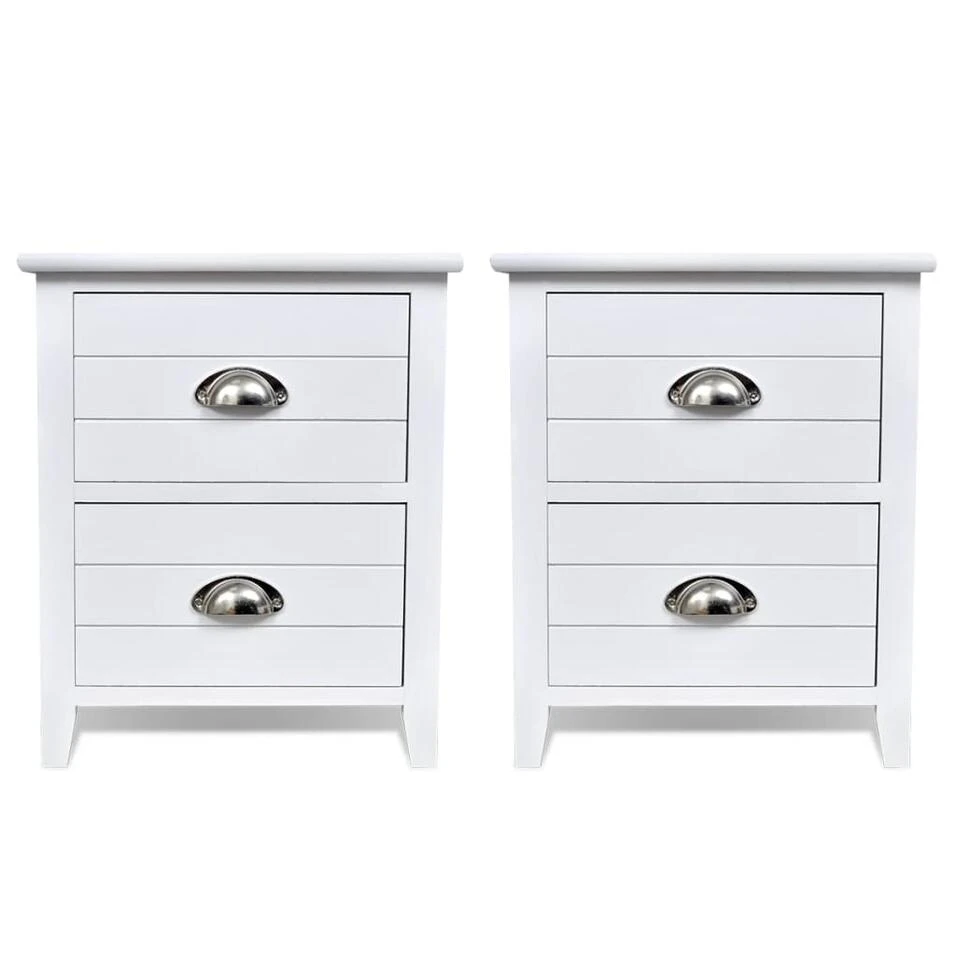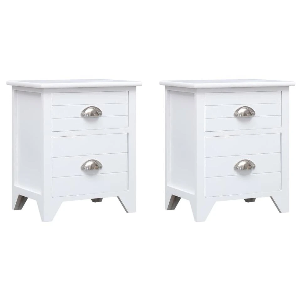 Deze nachtkastjes met 2 lades hebben een eenvoudig maar stijlvol ontwerp en kunnen ook worden gebruikt als bijzettafeltjes of telefoontafels.